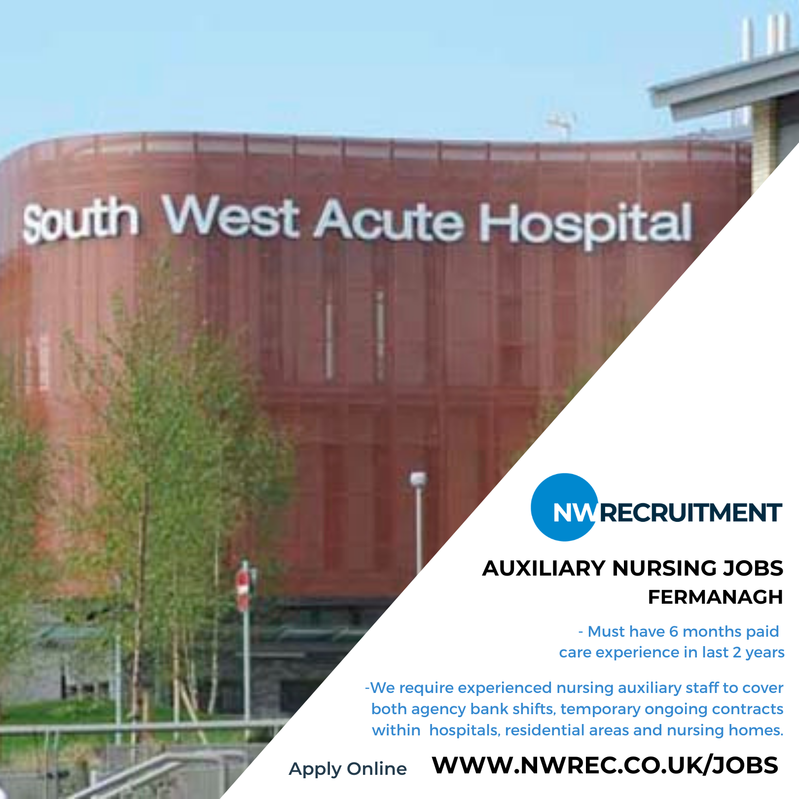 NW Recruitment agency are currently recruiting nursing auxiliary colleagues on behalf of our clients in Public NHS – Western Trust – #Fermanagh area and Private Sectors