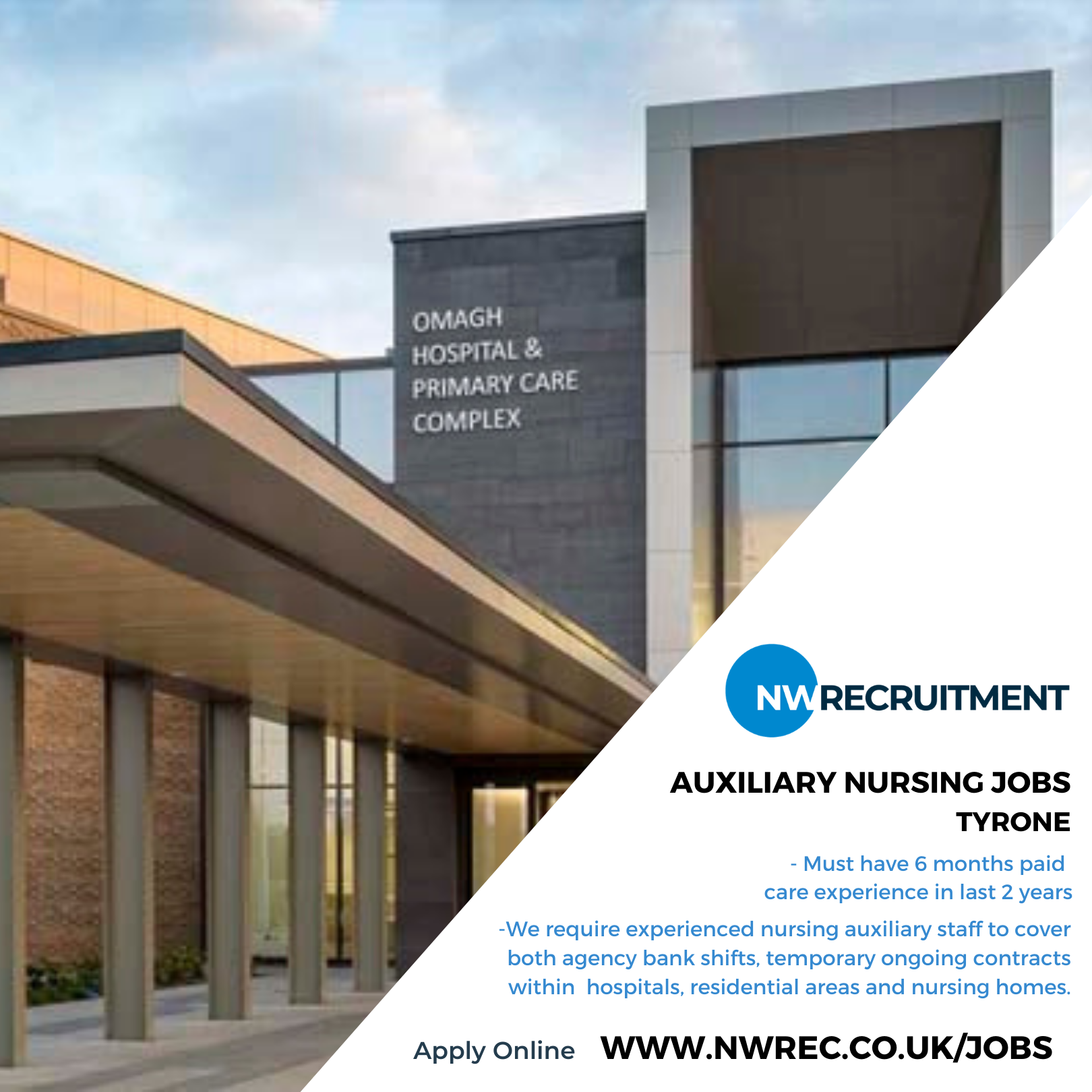 NW Recruitment agency are currently recruiting nursing auxiliary colleagues on behalf of our clients in Public NHS – Western Trust – #Omagh area and the private sector.