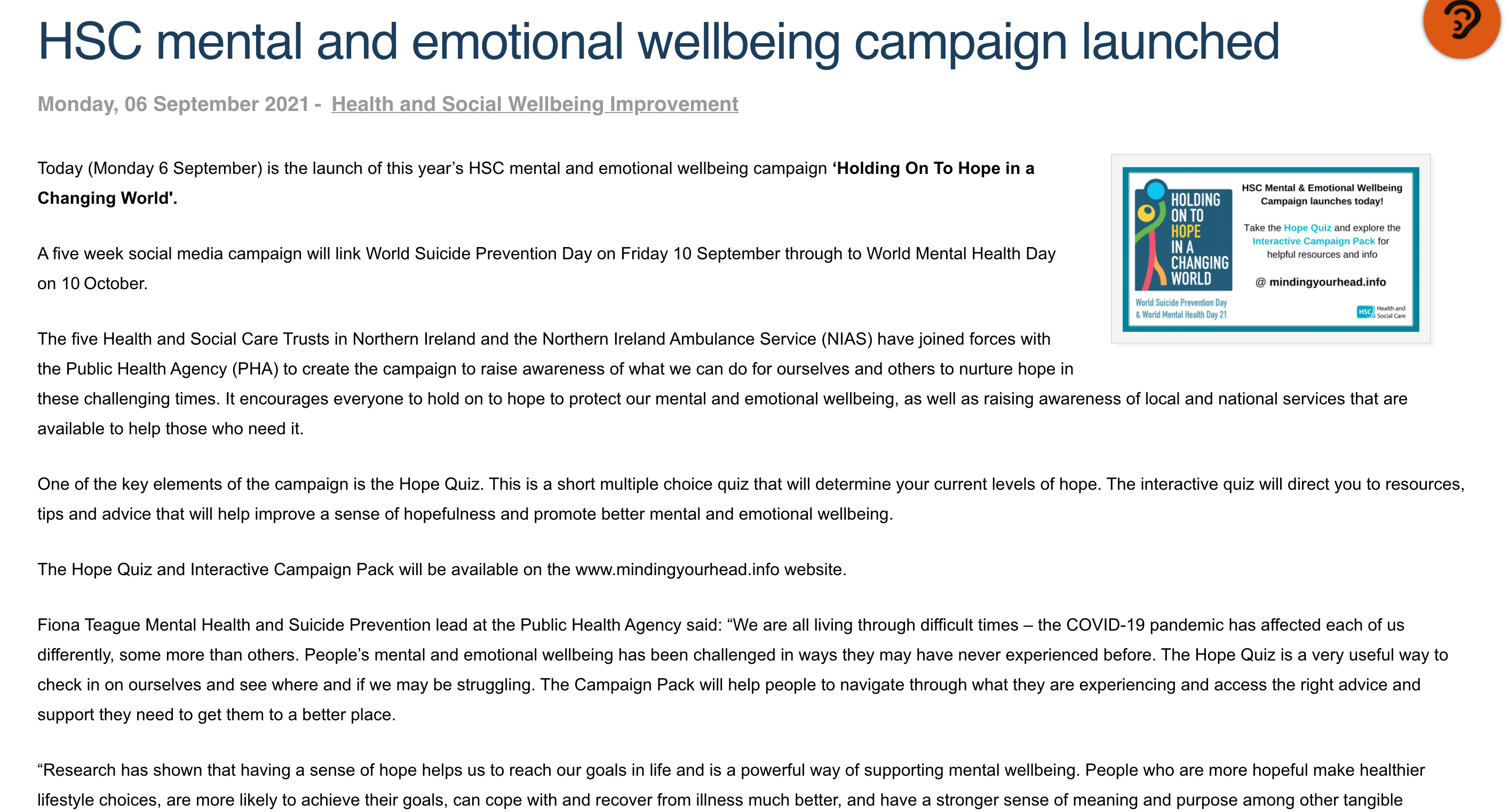Full report > https://www.publichealth.hscni.net/news/hsc-mental-and-emotional-wellbeing-campaign-launched