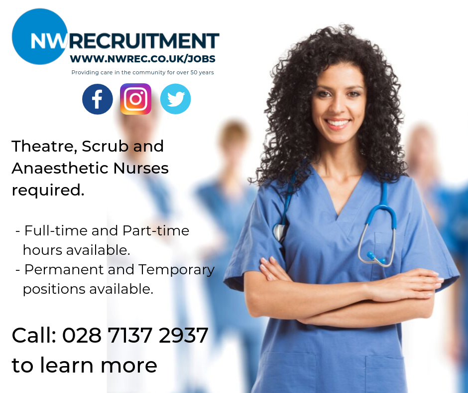 NW Recruitment are looking for Registered Nurses to work across Northern Ireland – including Theatre, Scrub and Anaesthetic Nurses.