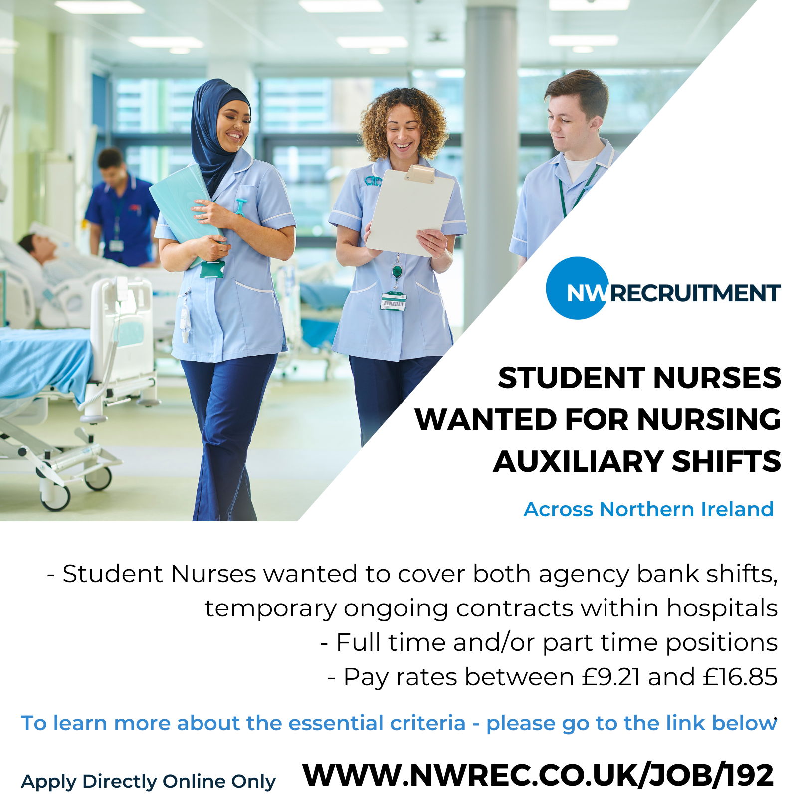 Student Nurses wanted for Nursing Auxiliary shifts to cover all areas of Northern Ireland.